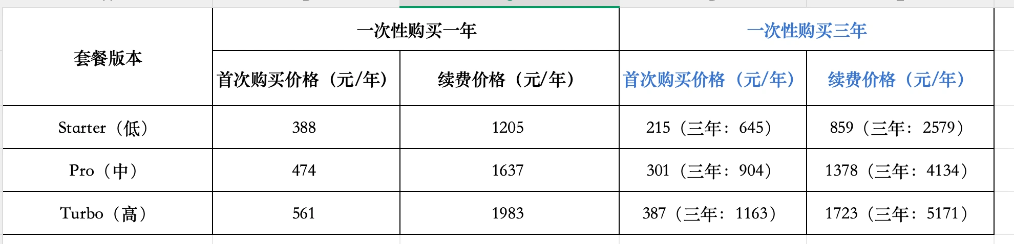 后面续费的价格会比首次购买单价贵很多。(每月贵5倍左右的价格)